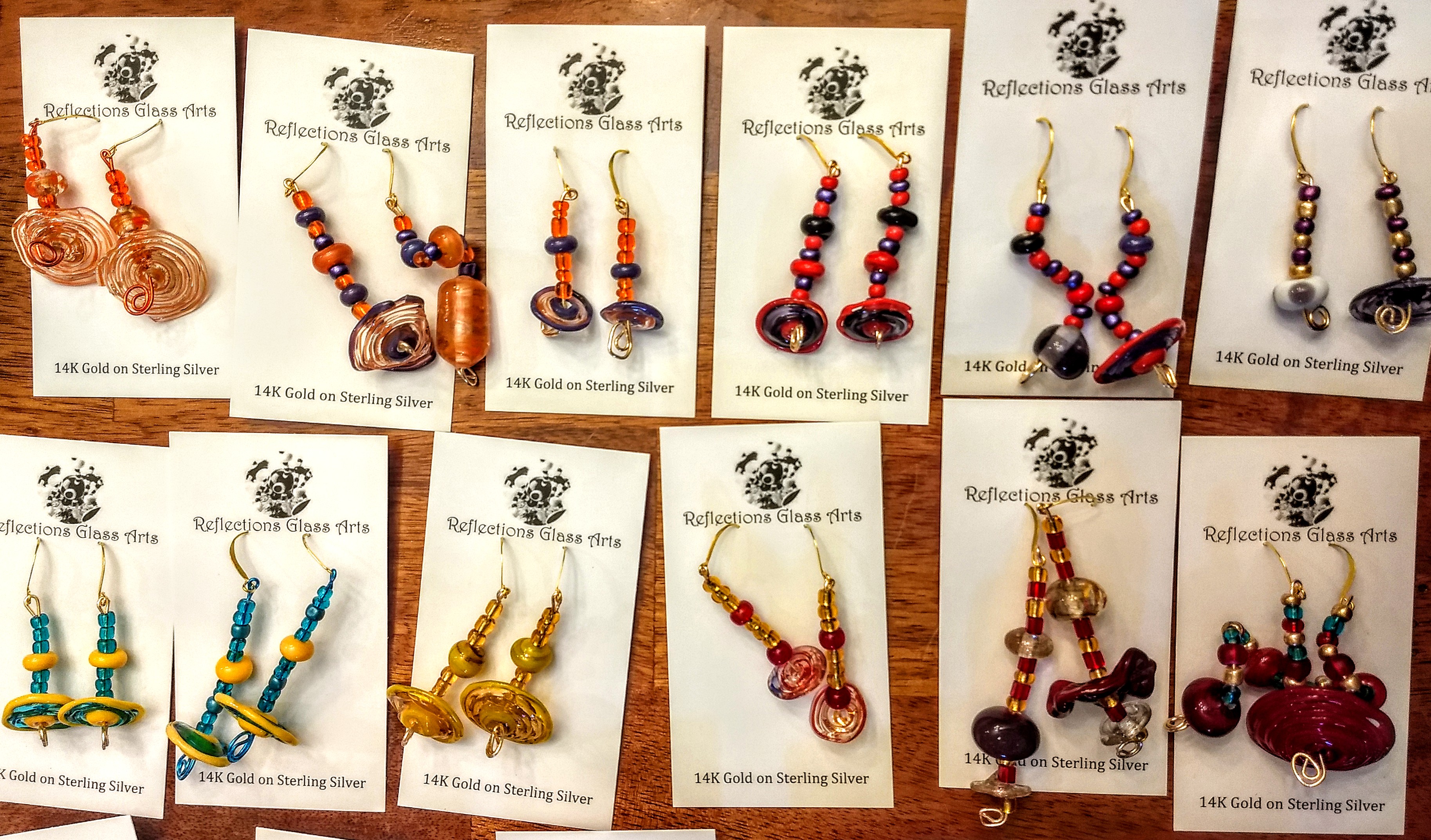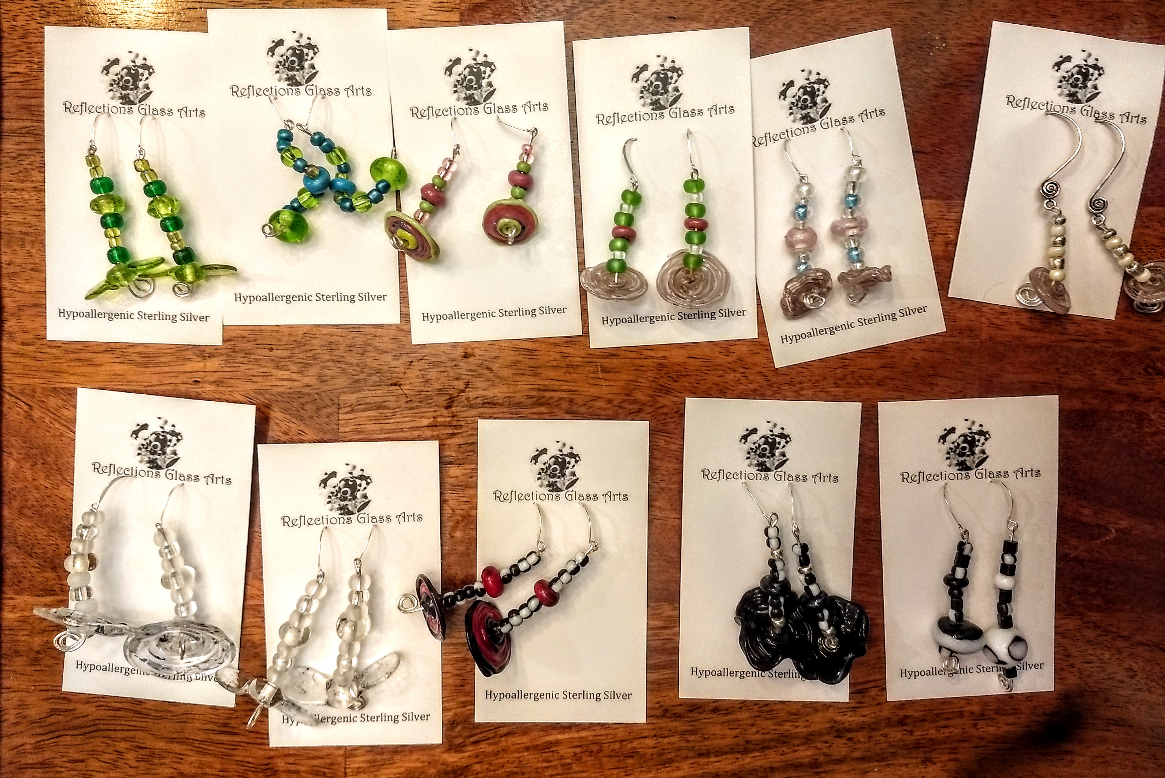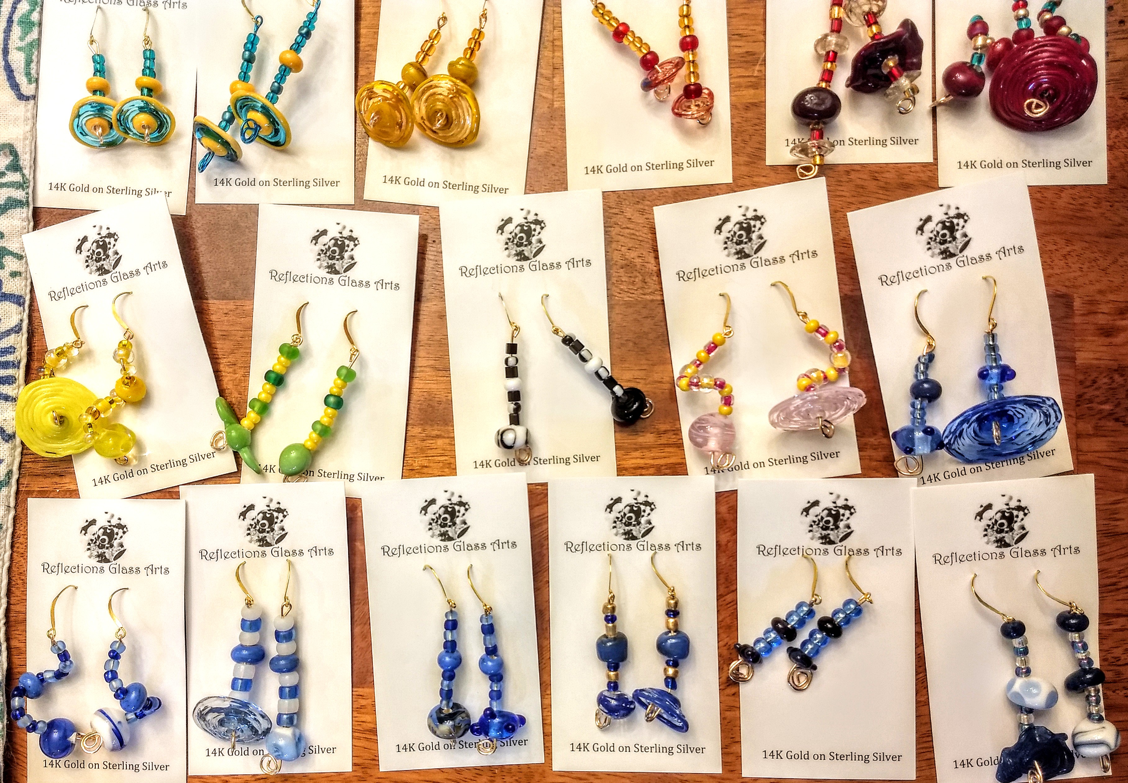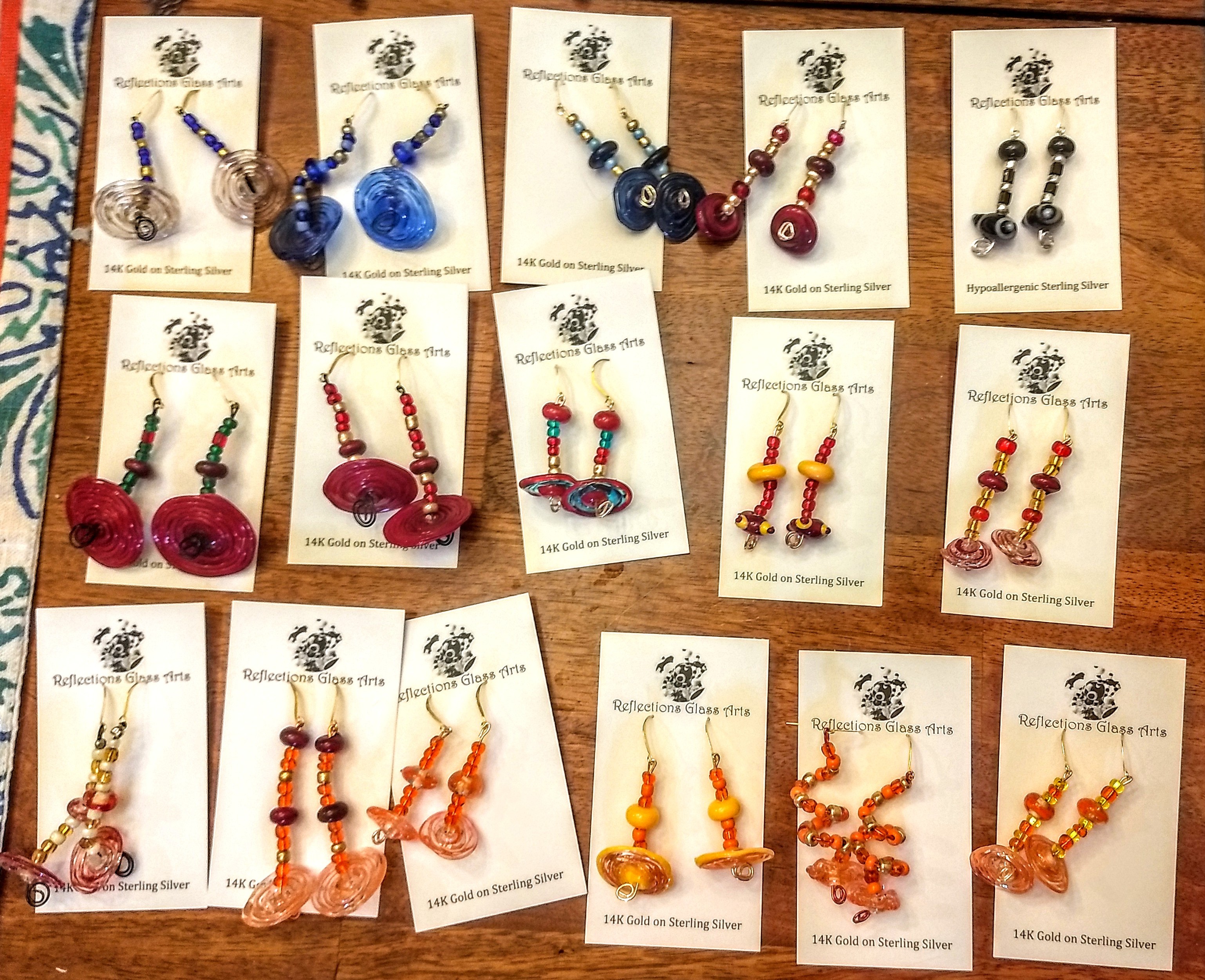 I have had a super busy few weeks, all good but busy…teaching art camps, installation and opening of the exhibit at the Guild in Northfield and also creating 100 pairs of earrings for the MN State Fair FOCI gallery. I had so much fun playing with new color combinations for the beads I made. I hope you enjoy the new designs. If you see something you like and won’t be at the fair, send me a message and I can make you a pair and even mail them if you live far away.