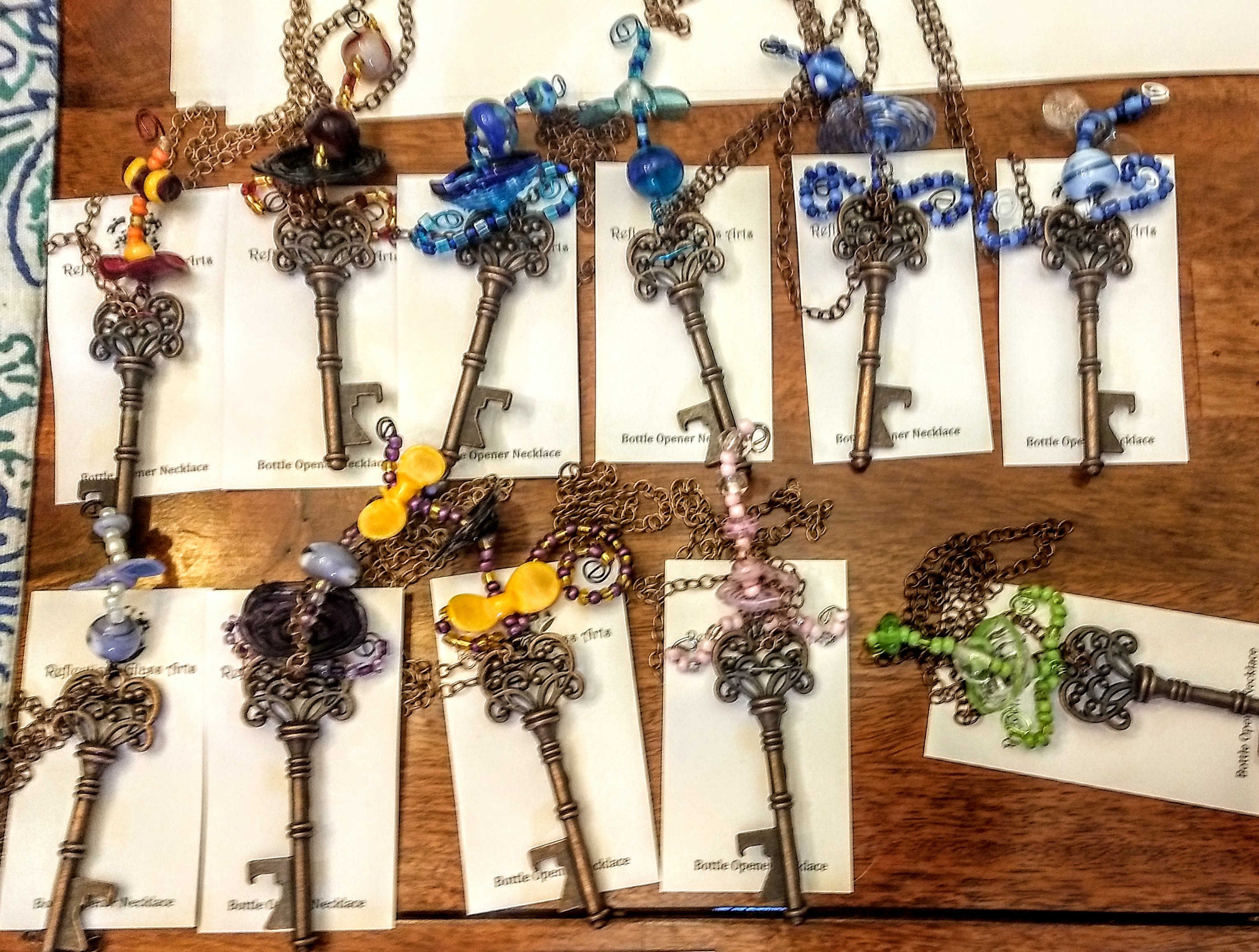 These are another kind of wearable art… bottle opener necklaces. Imagine how fun it would be to wear one to a party, tailgate or barbeque and use it to open someone’s beer. It is a fantastic conversation starter!