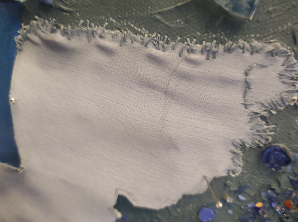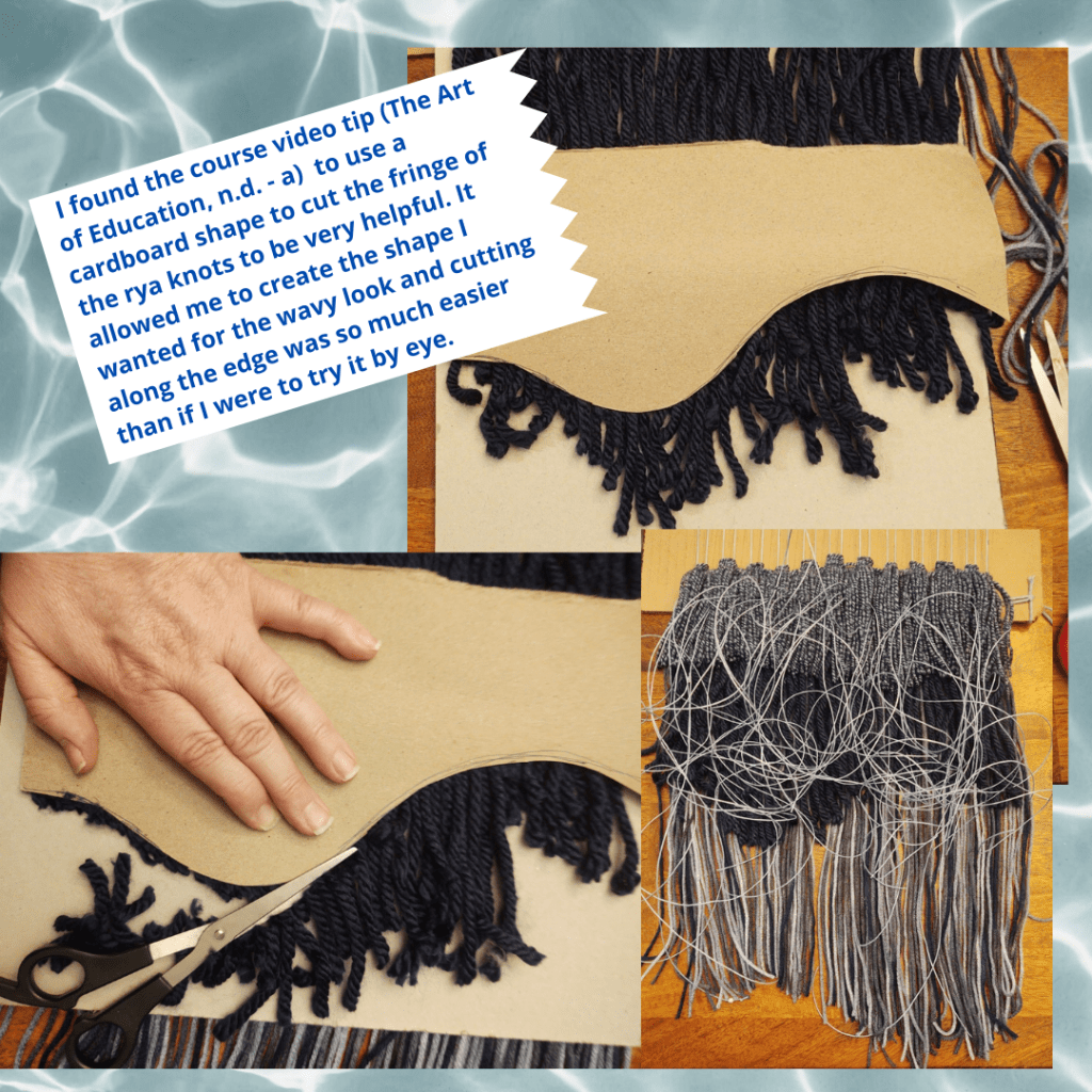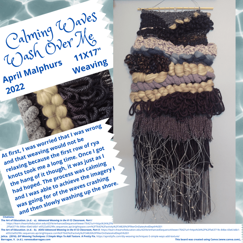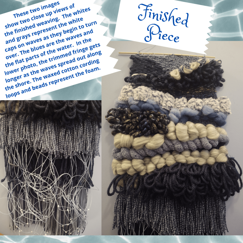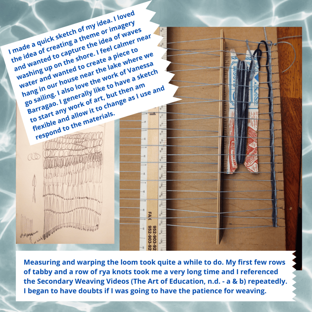 I am taking a fibers course through The Art of Education University as I wanted to learn more to apply to my multi-media pieces. Here is my first process board – weaving.