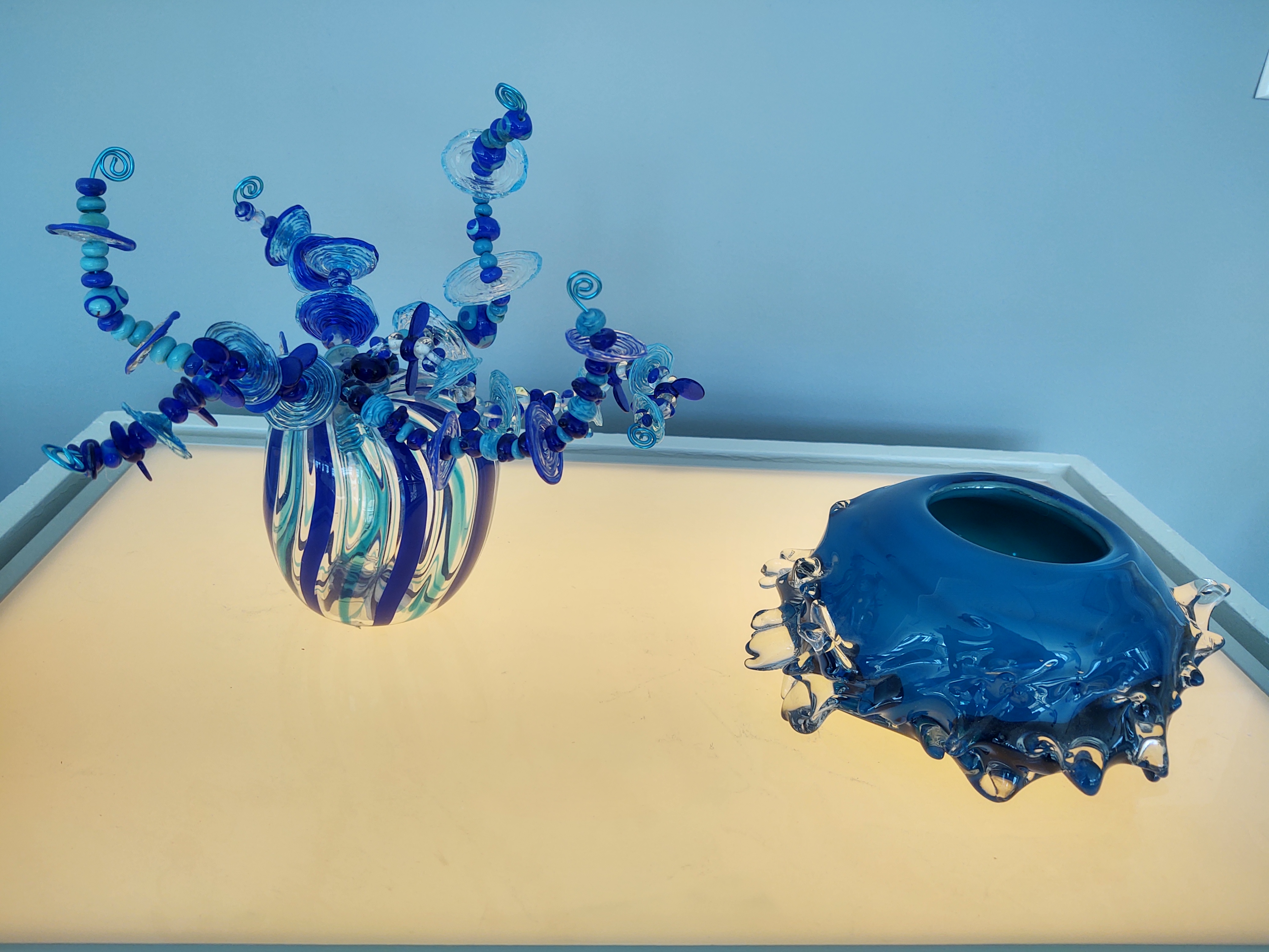This is your last week to view my exhibit at the Hopkins Center for the Arts http://www.hopkinsartscenter.com. Stop by to view their beautiful space full of windows perfect for showing off glass artwork. I love the way the sunlight shines through my pieces. While you are there also check out the installation work by Fawzia Khan – it is a powerful look at women – Becoming Visible!